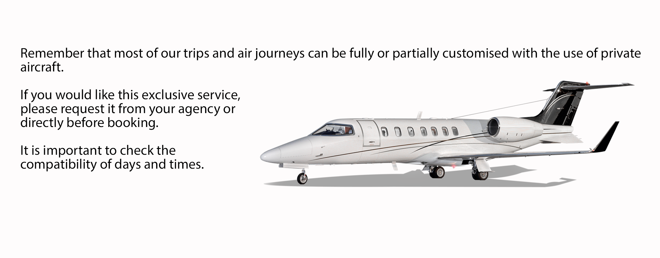 Independently of our experiences and trips, you can contract specific services on our website. Insurance for your trips to almost anywhere in the world or a private flight wherever you wish.